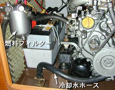 新たに取り付けた燃料フィルターと交換した冷却水ホース