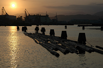 燃料計の針が残り四分の一を指しているので帰りが心配。給油することに。 軽油を買いたいとマリーナ事務所に行ったら、クルマで給油場所までつれてってくれた。15L買う。大型船ならこのポンツーンまでフネを回すんだろうが、唐草はポリタンで十分である。 フネに戻って、給油。ほぼピッタリ満タン。 ポンツーンの水道を使って、清水タンクも満タンにする。清水タンクは一度カラにしてから満タンにした。ついでにポリタンにも水を入れる。便利だ。さすがマリーナだ。 安良里からも近いし、補給がてら来るのもいいかも。少し荒れたときの練習航海には最適だと思う。最悪はマリーナにあずけて帰れるし。もちろんお金はかかるが、それは自分の腕とリスクとサラリーマンとしてのスケジュールの兼ね合いだ。 一段落して昼寝。 夕方5時頃起きて、マリーナで教わった食事どころに行く。学生向けの定食屋といった感じの店。そこでビールと桜えびのかき揚げを頼む。駿河湾の桜えびは私の大好物である。 店のテレビで、静岡の草薙で県警のヘリが墜落したというニュースをやっていた。まだ詳細が不明らしいが、中継のアナウンサー興奮しすぎ。煽っている。ああいう口調はよくない。しゃべりが仕事の人があれでいいのか、と少しビールが回った頭で憤る。ははは。居酒屋で酔っぱらったサラリーマンだね。そのうち天下国家を語りだすね。迷惑オヤジ。 店を出て、貯木場の写真を撮り、ドラッグストアで買い物してマリーナに戻りシャワーを浴びる。