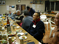 「さるこう」は美味いのだが、なかなか入手できない。そこで中村艇の常備焼酎「粒露」の入手方法をマネして、蔵元の地元からインターネットの通販で6本単位で買うことにした焼酎である。私はこの「さるこう」が好きだ。 懇親会の帰りは暗くなるだろうが、行くのは明るいうちに行きたい。開始は5時からだが4時半にはフネを出た。風が吹き上がって、フネに戻れなくなってもいいように戸締まりと係留状況確認し、貴重品とクルマのカギを持って出る。帰れるときのために、ヘッドランプも持って行く。さるこうとポットも持って行く。 懇親会の会場は、安良里の漁民センターの2Fである。ここはとてもいい建物なのだが、ほとんどダイバー専用のようになっている。ダイバーといっても本職のダイバーではなく、プレジャーダイバーだ。安良里で遊ぶという点では我々と同じである。同じなのだが、フネ遊びの人達よりもダイバーのほうが優遇されているような気がする。ダイバーはこういう施設も使えるし。 この施設を我々も使っていい、と漁協からは言われているのだが、この建物に常駐しているダイビング業者から文句を言われたことがあるのは私だけではない。しかも気分を害する言われ方をしたのも私だけではない。 ダイビング業者にしてみれば、岸壁で釣りをして汚して帰っていく釣り人と、お金を払って安良里港にボート係留している我々との違いがわからないので、しかたのないところはあるのだろうが、我々としては権利を行使しているのに文句を言われるようで気分は悪い。 話は逸れるが、プレジャーダイバーはひとりではなにもできない。誰かのフネで潜るところまで連れて行ってもらわなければならない。そのため、プレジャーダイバーを受け入れる側はそれなりの施設を用意する。運営にも大勢の人がかかわる。しかし、ヨット遊びは基本的には単独である。横のつながりというのが乏しい。漁民センターを自由に使えるのがダイバーで、使えないのがヨット/ボート乗りというのは、政治力の差、あるいは数の力の差、ではないかとも思う。 閑話休題(話を戻して)。 5時を回ってみなさん集まってきた。 中村さんの進行で、まずは九里さんが漁協への感謝を込めて乾杯の挨拶をした。その後近藤さんのスピーチ。近藤さんの話の内容はとても興味深いものだった。安良里の歴史と今後の方向性というような話だった。しかし、近藤さんは堅苦しくなく優しい語り口で安良里の過去から語り起こして、それからの未来を説いてくれた。まさに近藤さんの知性と人徳を感じる内容であった。 挨拶が終わるとすかさず近藤さんの隣に行って、回りの人といろいろと話を聞いたが、人気者の近藤さんを独占できるわけもなく、近藤さんは参加者みんなのところをまんべんなく回っていた。そのあたりのバランス感覚もさすがだと思う。 漁協からはあと2人参加の予定だったのだが、急用のため近藤さん一人の参加だったが、次回の懇親会では是非、漁協からも大勢参加してほしいとこころから思う。 ほんとうに漁協の皆様、お気遣いありがとうございます。 今回の懇親会は飲み物食べ物持参ということなので、各自持ちよりなのだが、九里さんのところで中華料理を2品作ってきてくれた。大皿に2品。たいへんに美味しくいただきました。