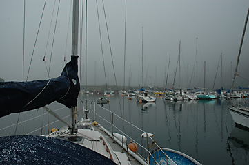 昨日はだいぶ飲んだような気がするが、二日酔いにはならなかった。夜中にのどがかわいて一度起きたが、それ以外は特にふだんとかわらずに起きることができた。 0800頃鈴木さんが再び現れ、朝食を、ということになり、そのまま鈴木さんのフネに行く。 今日は霧がすごい。 朝食はホッケの焼いたのとめんたいこ(これは年配のカップルの奥様のお気に入りで、取り寄せたそうだ。美味かった)、卵焼きとおしんこ。それとごはんだった。 談笑しながら朝食。 若いカップルが早く帰るということなので、テンダーで送っていく。我々はそのまま唐草に戻る。 と、しばらくしてトイレに行こうと思ったら雨。傘をさしてトイレに行く。 雨脚は強まるばかり。 帰る支度をし、荷物にはビニール袋で雨対策をする。でも雨が強いので、しばらくキャビンで雨が弱まるのを待つ。天気予報では、午後から上がってくるらしい。 朝から一大イベントがあったのですこし疲れた。天気待ちしつつ休む。
